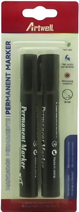 Artwell Permanent 3 Pack Marker Pens - Black, Blue And Red Markers, 2 To 3mm Tip Size, Waterproof and Colorast, Permanent On Most Hard-to-Mark Surfaces, Non-Toxic, And Environment Protecting, Always Recap And Put Flat After Using, High Quality And Durability, Weathering Resistance, Not Suitable For Children Under 36 Months, No Warranty