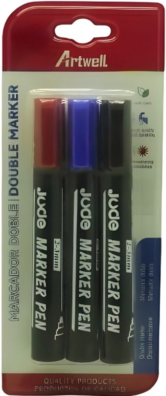 Artwell Permanent Double Black Marker - 3/6mm Tip Size, Pack Of 3 Marker, Xylene Free, Alcohol Based Ink, Fiber Tip, Refillable Ink, Waterproof, Instant Drying, Permanent, Non-Toxic, High Quality, Weathering Resistance, Not Suitable For Children Under 36 Months, No Warranty BW-S1007-282